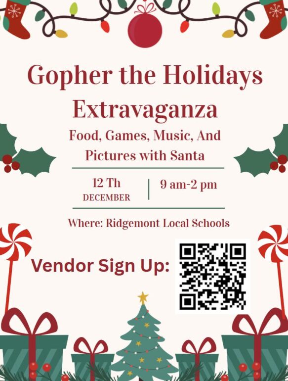 Ridgemont Local Schools Ridgemont Schools announced that sign-ups are officially open for their very first Gopher Holiday Extravaganza this December. There will be local crafters, games and activities, a special Secret Santa Shop for students, songs and music from their talented students, and so much more. If you would like to be part of the event that is scheduled to take place December 12, early bird sign-ups are happening now. To secure a vendor spot, please scan the QR code […]