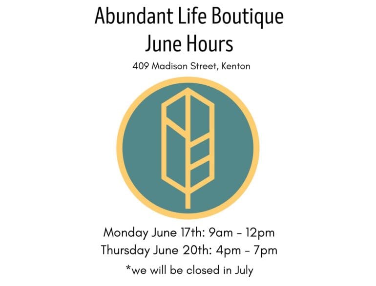 Abundant Life Boutique in Kenton Announces June Operating Hours
