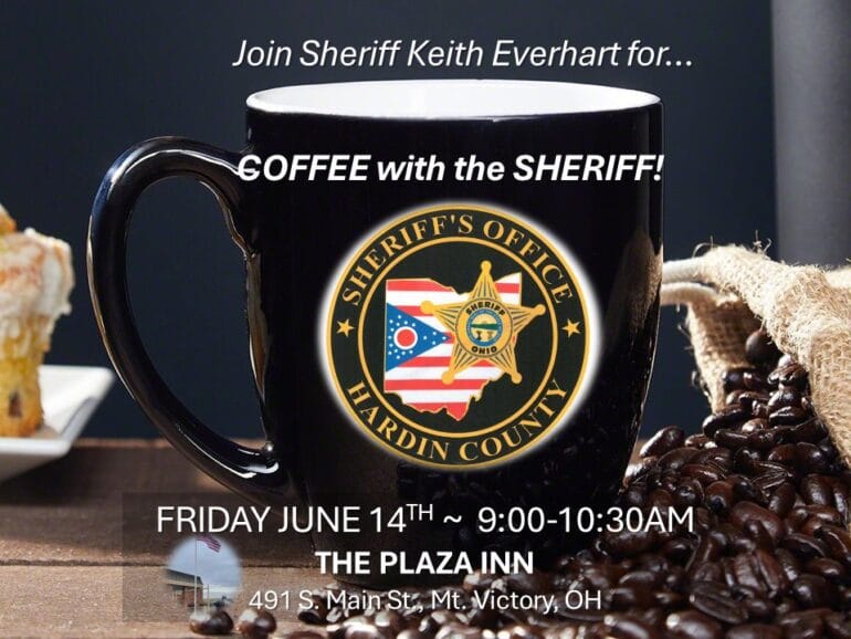 Photo: Hardin County Sheriff's Office The next Coffee with the Sheriff forum held by Hardin County Sheriff Keith Everhart is scheduled for Friday, June 14. The hours are from 9:00 until 10:30 that morning at the Plaza Inn Restaurant in Mt. Victory. You will have a chance to meet Sheriff Everhart and have a cup of coffee courtesy of the Sheriff. The forum offers and opportunity for casual conversation, to ask questions, express concerns or offer a compliment.