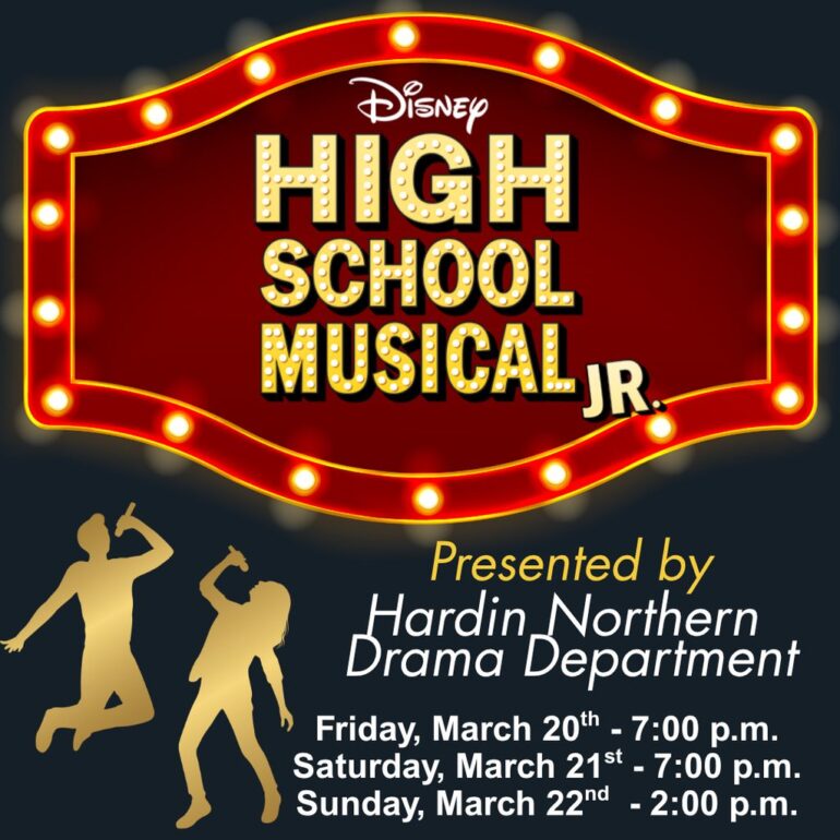 Hardin Northern Local School District Hardin Northern's Drama Department will present Disney's High School Musical Jr. next month. The show will be presented Friday, March 20 through Sunday, March 22. Show times will be 7pm Friday and Saturday night and a matiness performance Sunday at 2. More information will be added soon on the Hardin Northern Local School District Facebook page.