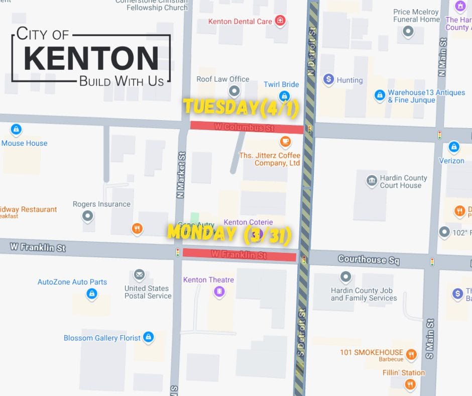 Franklin Street from Detroit to Market in Kenton will be closed for parking today.
