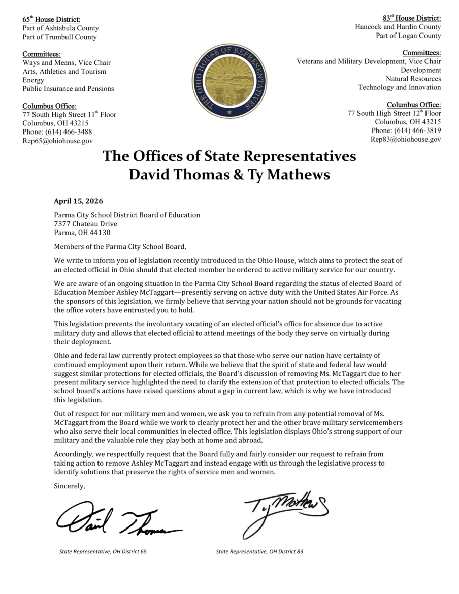 The letter that was sent to the Parma City School Board can be viewed below.