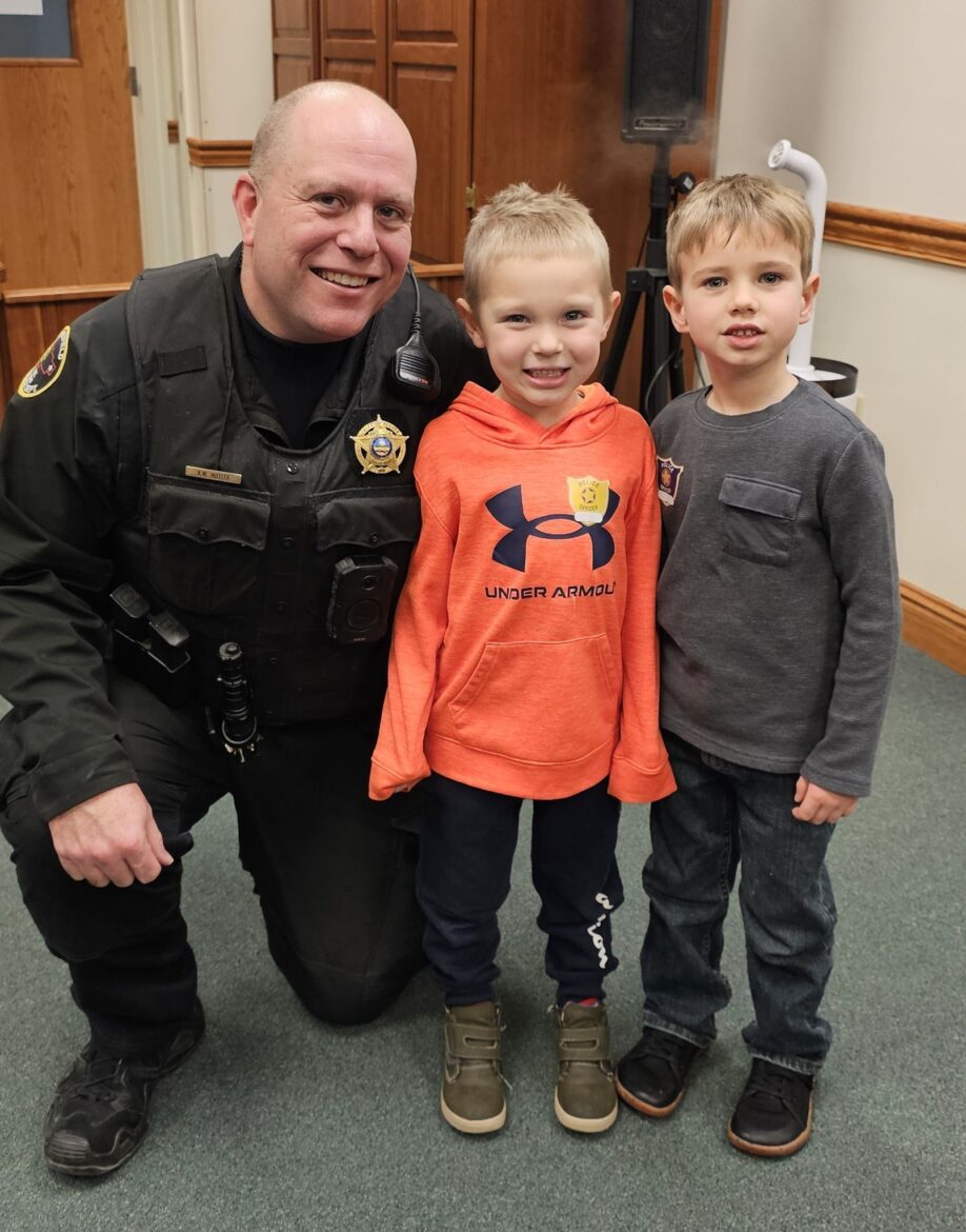 Waynesfield Police Chief Nathan Motter was invited to read a couple of books during the children’s weekly story time at White Memorial Library in Waynesfield earlier this week.