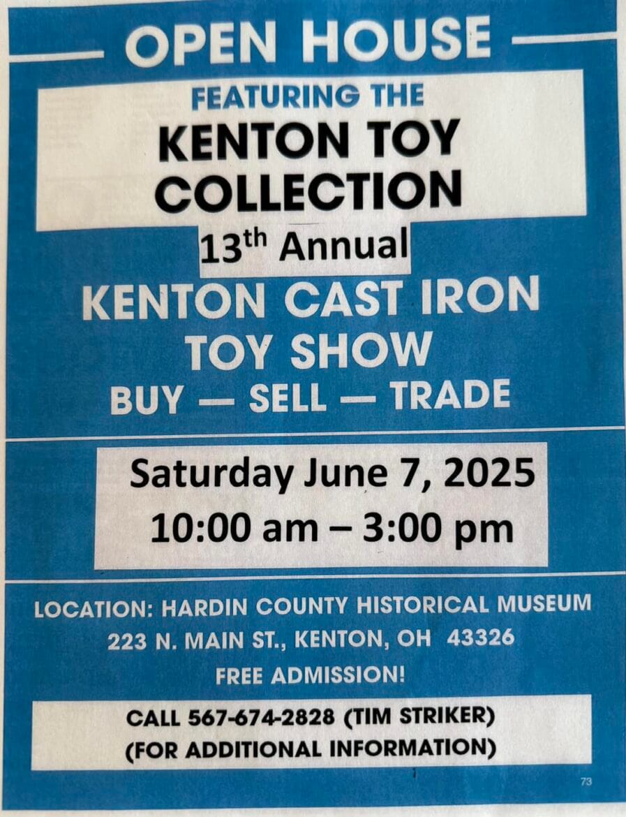 The Hardin County Historical Museums 13th Annual Kenton Cast Iron Toy Show will be held tomorrow.