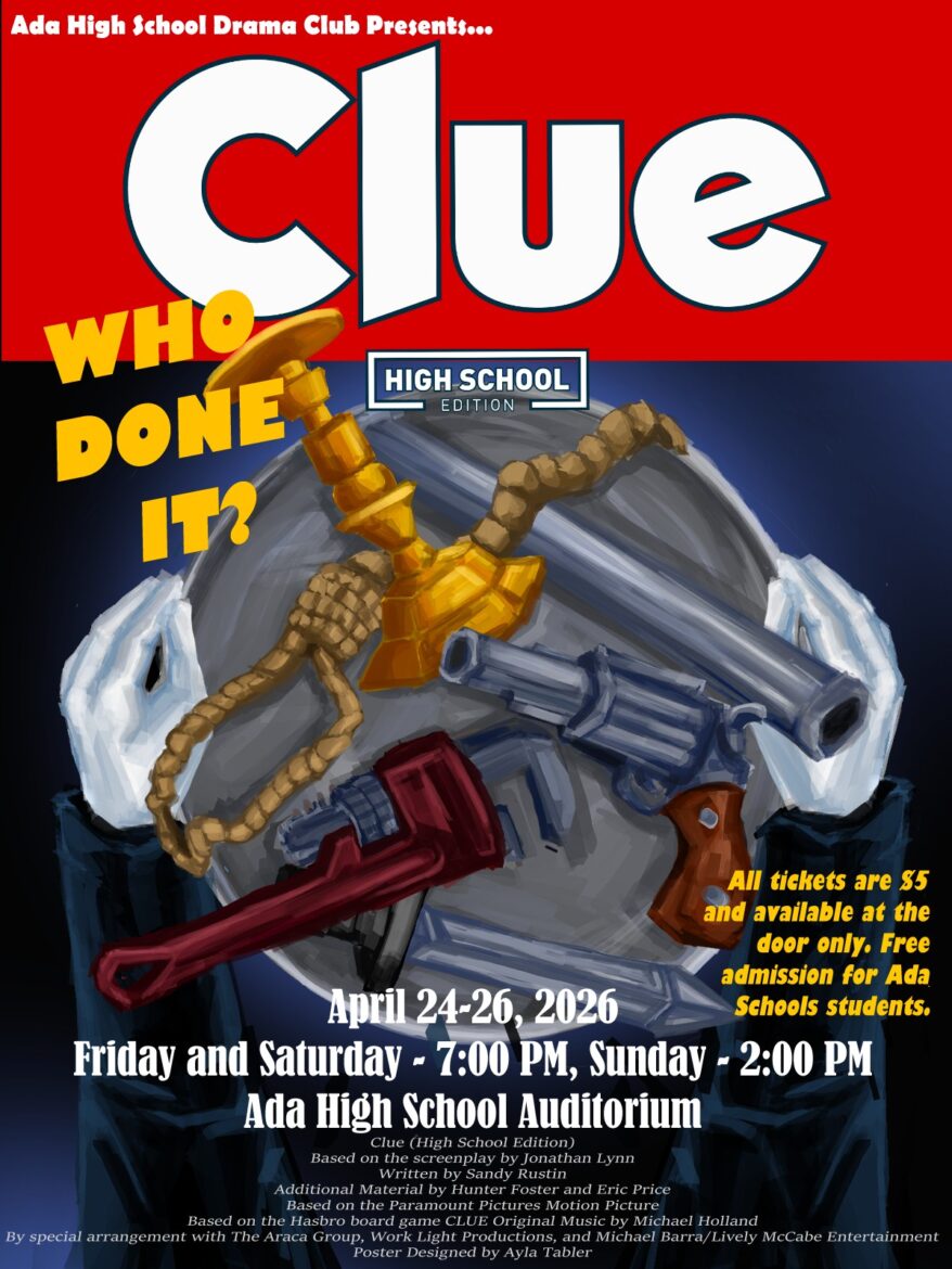 Ada High School Drama Club will present CLUE- High School Edition from April 24- April 26.