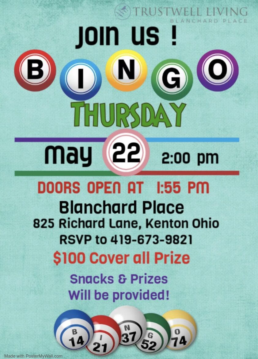 Blanchard Place will hold a bingo event this Thursday afternoon.