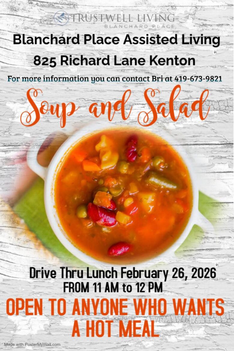 Blanchard Place Assisted Living will be serving a Soup and Salad meal on February 26.