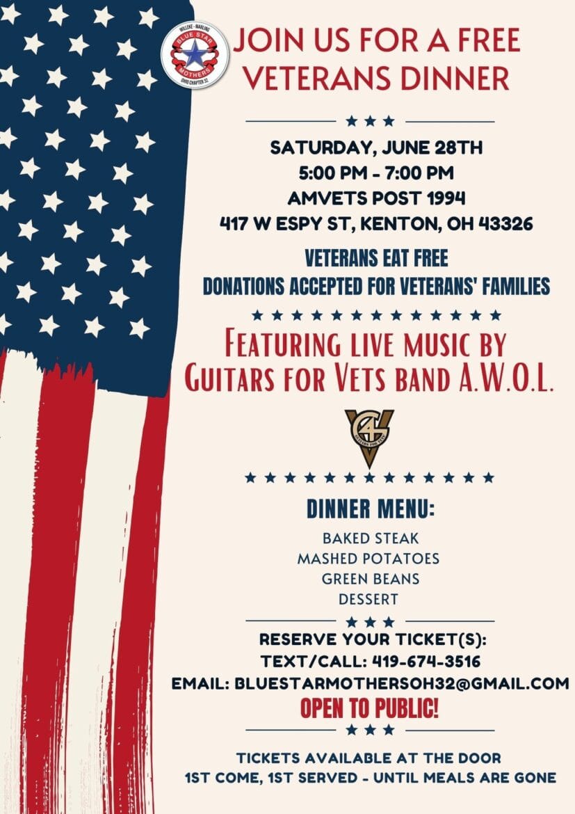 Blue Star Mothers Ohio Chapter 32 will be holding a Veterans Dinner on Saturday, June 28.