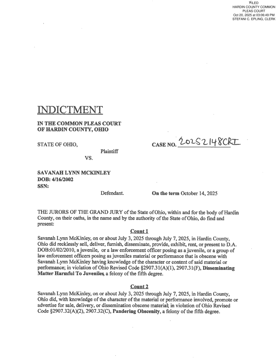 McKinley’s trial has been scheduled for April 7, 2026 in Hardin County Common Pleas Court.