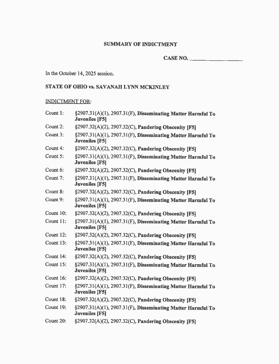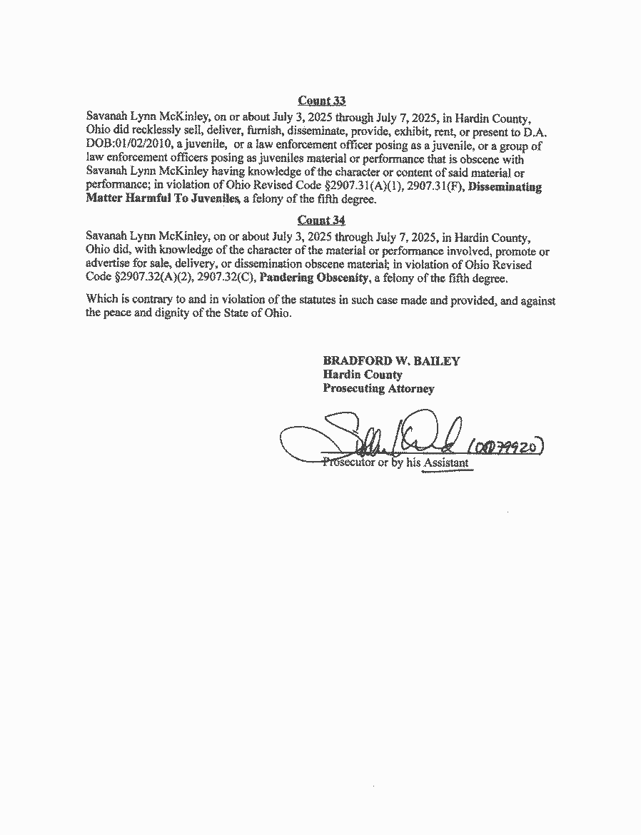 23-year-old Savanah L. McKinley was found indigent and was appointed Drew Workman as her attorney and pleaded not guilty to all charges at her recent arraignment.