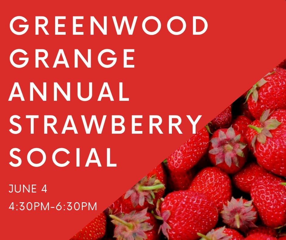 Greenwood Grange will hold its Annual Strawberry Social on Tuesday, June 4.