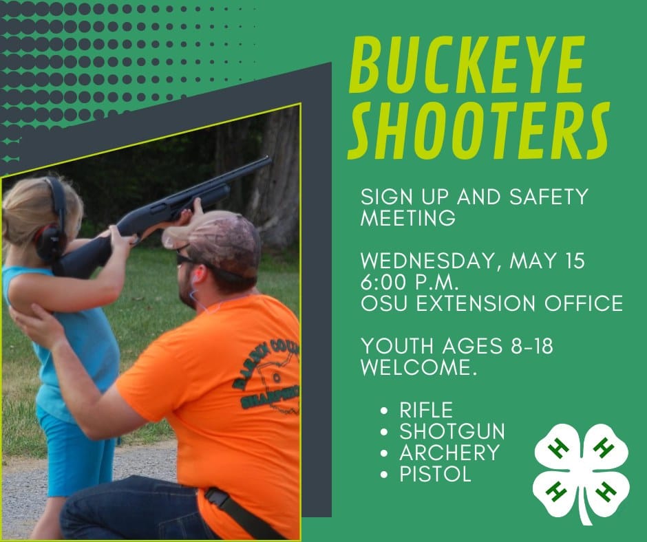Participants in the Buckeye Shooters 4-H Club can learn about shooting sports, gun safety, and shoot rifle, shotgun, archery, and pistol.
