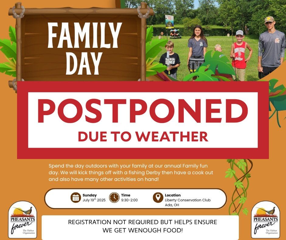 With the anticipated weather this weekend, Hardin County Pheasants Forever has decided to cancel its Family Fun Day originally scheduled for tomorrow, July 19th at the Liberty Conservation Club.
