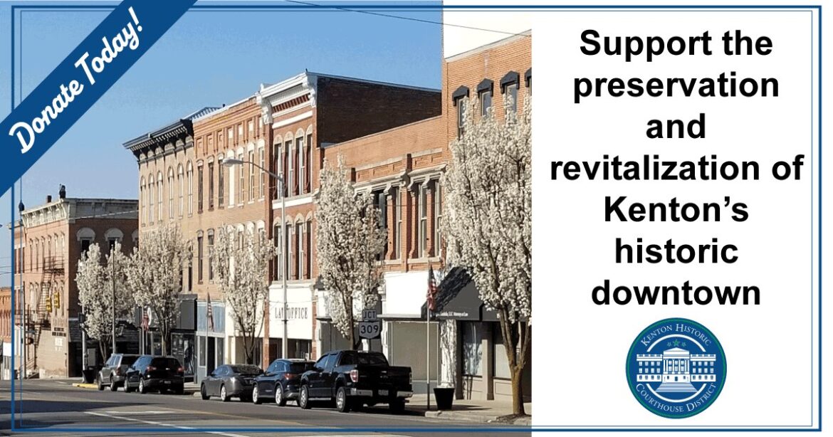 If you’d like to make a donation, please stop by the office, call them at 419-673-4131, or mail checks to Kenton Historic Courthouse District, 225 South Detroit Street, Kenton, OH 43326. You can also find them @HistoricCourthouseDistrict on Venmo.