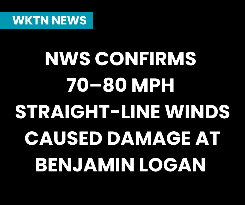 The National Weather Service has confirmed damaging straight-line winds of 70 to 80 miles per hour were responsible for the damage observed at Benjamin Logan School property Tuesday evening.