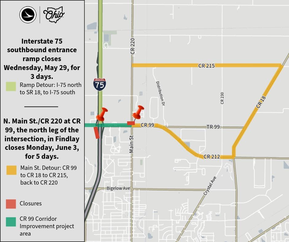 • I-75 southbound entrance ramp will close on May 29 for approximately three days.