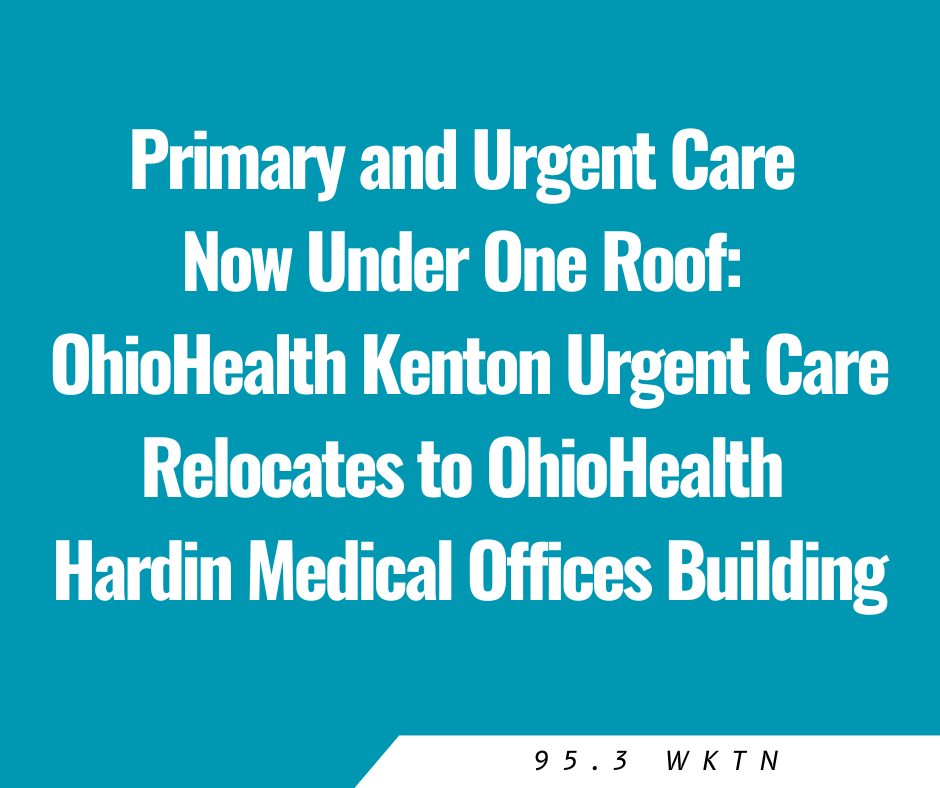 Kenton, Ohio – Beginning March 30, OhioHealth Urgent Care Kenton will relocate from its hospital-based setting to the OhioHealth Physician Group Primary Care practice, located in Suite 103 at the OhioHealth Hardin Medical Offices building at 75 Washington Blvd, Kenton, OH 43326.