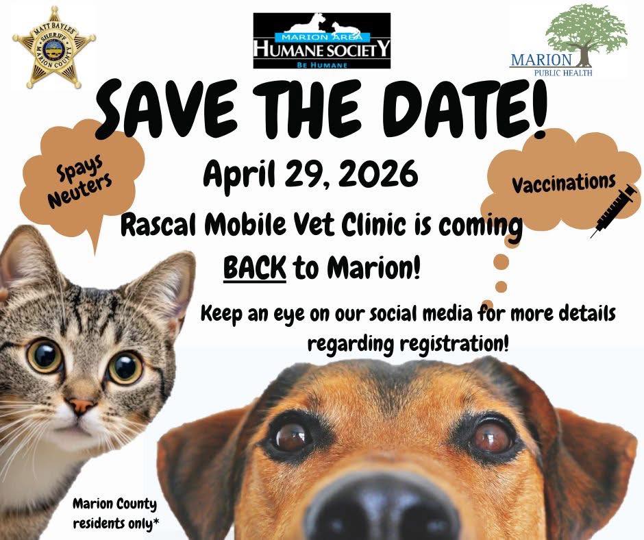 For more information and updates, follow Marion Area Humane Society on Facebook.