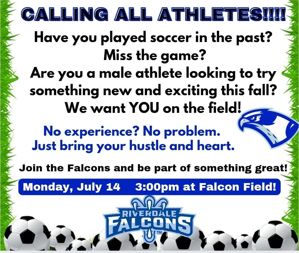 Riverdale Falcons Boy Soccer is currently looking for high school players.