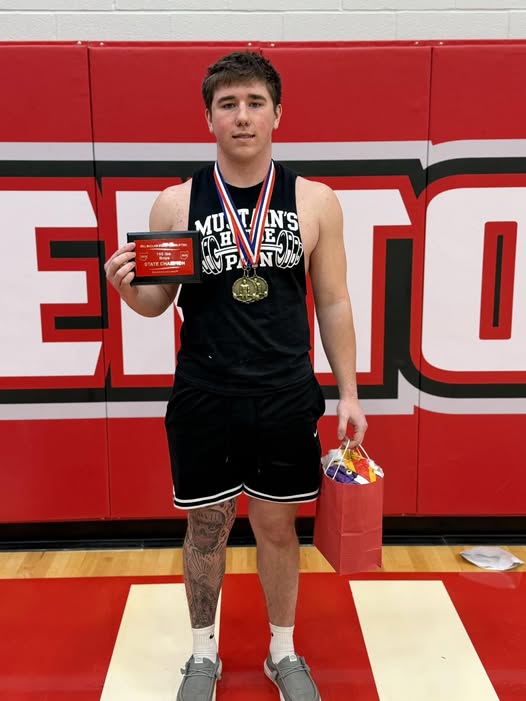 Jayden Mustain earned Kenton a state powerlifting title in the 195-pound weight class with a total lift of 1,325 pounds. Mustain didn’t just win, he dominated his class, setting a weight class record by bench pressing 385 pounds, delivering the top squat at 575 pounds, and adding a deadlift of 365 pounds.